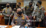 Kapolri Jenderal Pol Listyo Sigit Prabowo bersiap mengikuti rapat kerja dengan Komisi III DPR di Kompleks Parlemen, Senayan, Jakarta, Rabu (24/8/2022). Rapat tersebut membahas terkait kasus dugaan pembunuhan berencana terhadap Brigadir Yosua di rumah dinas mantan Kadiv Propam Irjen Pol Ferdy Sambo. Prayogi/Republika (FOTO : Prayogi/Republika.)