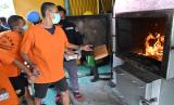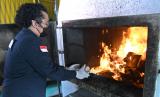REPUBLIKA.CO.ID,JAKARTA -- Petugas Bareskrim Polri memasukkan salah satu barang bukti narkotika ke dalam incinerator (alat pembakar) di Instalasi Kesling, RSPAD Gatot Soebroto, Jakarta, Rabu (24/8/2022).