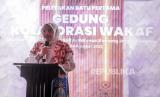 Ketua Pembina Yayasan Saif Ar-Rahman Marzuki Usman memberikan sambutan saat peletakan batu pertama pembangunan Gedung Kolaborasi Wakaf di Gang H. Musa, Cilandak Timur, Jakarta, Rabu (24/8/2022). Gedung Kolaborasi Wakaf resmi dibangun di lahan wakaf Yayasan Saif Ar-Rahman dengan dibangun oleh tiga lembaga sosial, yakni Gelora Wakaf Foundation, Yayasan Saif Ar-Rahman dan PRAKTISI Politeknik Bisnis Digital, yang bertujuan untuk menciptakan SDM yang menguasai teknologi digital dan mempunyai jiwa kewirausahaan untuk meningkatkan kesejahteraan umat. (FOTO : Republika/Putra M. Akbar)