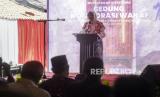 Direktur PRAKTISI Politeknik Bisnis Digital Munir M. Ali memberikan sambutan saat peletakan batu pertama pembangunan Gedung Kolaborasi Wakaf di Gang H. Musa, Cilandak Timur, Jakarta, Rabu (24/8/2022). Gedung Kolaborasi Wakaf resmi dibangun di lahan wakaf Yayasan Saif Ar-Rahman dengan dibangun oleh tiga lembaga sosial, yakni Gelora Wakaf Foundation, Yayasan Saif Ar-Rahman dan PRAKTISI Politeknik Bisnis Digital, yang bertujuan untuk menciptakan SDM yang menguasai teknologi digital dan mempunyai jiwa kewirausahaan untuk meningkatkan kesejahteraan umat. (FOTO : Republika/Putra M. Akbar)