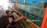 Pengurus Desa Wisata Kadisoro Nyawiji Dadi Siji (Dewi Kajii) menjelaskan ke pengunjung tentang budidaya ikan hias di Kadisoro, Pandak, Bantul, Yogyakarta, Rabu (24/8/2022). Desa Kadisoro menjadi salah satu sentra budidaya ikan hias di Yogyakarta. Sekitar 50 jenis ikan hias berhasil dibudidayakan di sini. Selain untuk pasar lokal, ikan hias dari Kadisoro sudah diekspor diantaranya ke negara Korea, China, serta Amerika Tengah. (FOTO : Republika/Wihdan Hidayat)
