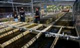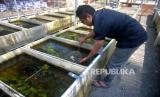 Pengurus Desa Wisata Kadisoro Nyawiji Dadi Siji (Dewi Kajii) menjelaskan tentang budidaya ikan hias di Kadisoro, Pandak, Bantul, Yogyakarta, Rabu (24/8/2022). Desa Kadisoro menjadi salah satu sentra budidaya ikan hias di Yogyakarta. Sekitar 50 jenis ikan hias berhasil dibudidayakan di sini. Selain untuk pasar lokal, ikan hias dari Kadisoro sudah diekspor diantaranya ke negara Korea, China, serta Amerika Tengah. (FOTO : Republika/Wihdan Hidayat)