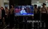 REPUBLIKA.CO.ID,JAKARTA -- Personel Brimob berjaga saat sidang Komisi Kode Etik Polri (KKEP) terhadap mantan Kadiv Propam Polri, Irjen Ferdy Sambo di gedung TNCC Mabes Polri, Jakarta, Kamis (25/8/2022).