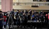 Jurnalis mengambil gambar suasana penjagaan sidang Komisi Kode Etik Polri (KKEP) terhadap mantan Kafiv Propam Irjen Ferdy Sambo di gedung TNCC Mabes Polri, Jakarta, Kamis (25/8/2022). Sidang kode etik yang digelar secara tertutup tersebut menghadirkan sejumlah saksi diantaranya mantan Karopanimal, Brigjen Hendra Kurniawan, mantan Karopaminal, Eks Karoprovos, Brigjen Benny Ali, Mantan Kapolres Jakarta Selatan, Kombes Budhi Herdi, Mantan Kaden A Biro Paminal, Kombes Agus Nurpatria, dan eks Kabag Gakkum Roprovost Divpropam Polri, Kombes Susanto. Republika/Thoudy Badai (FOTO : Republika/Thoudy Badai)
