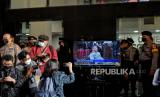 Jurnalis mengambil gambar layar yang menampilkan mantan Kadiv Propam Irjen Ferdy Sambo saat menjalani sidang Komisi Kode Etik Polri (KKEP) di gedung TNCC Mabes Polri, Jakarta, Kamis (25/8/2022). Sidang kode etik yang digelar secara tertutup tersebut menghadirkan sejumlah saksi diantaranya mantan Karopanimal, Brigjen Hendra Kurniawan, mantan Karopaminal, Eks Karoprovos, Brigjen Benny Ali, Mantan Kapolres Jakarta Selatan, Kombes Budhi Herdi, Mantan Kaden A Biro Paminal, Kombes Agus Nurpatria, dan eks Kabag Gakkum Roprovost Divpropam Polri, Kombes Susanto. Republika/Thoudy Badai (FOTO : Republika/Thoudy Badai)