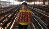 REPUBLIKA.CO.ID,BOYOLALI -- Pekerja memanen telur ayam di Ngeden, Ampel, Boyolali, Jawa Tengah, Kamis (25/8/2022).