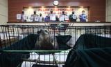 Petugas membawa barang bukti satwa saat ungkap kasus tindak pidana konservasi sumber daya alam hayati dan ekosistem di Polda Jawa Timur, Surabaya, Jawa Timur, Jumat (26/8/2022). Polda Jawa Timur menangkap lima tersangka atas kasus dugaan memperniagakan satwa-satwa dilindungi secara ilegal dan mengamankan barang bukti satwa burung sebanyak 291 ekor, satwa mamalia sebanyak 11 ekor dan satwa reptil sebanyak dua ekor. (FOTO : ANTARA/Didik Suhartono)