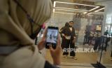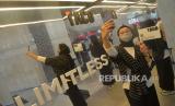 Pengunjung berfoto di seni instalasi bertajuk Limitless dalam pameran Art Jakarta 2022 di Jakarta Convention Center (JCC) Senayan, Jakarta, Jumat (26/8/2022). TACO perusahaan penyedia solusi interior turut mendukung pameran seni Art Jakarta 2022 dengan menampilkan instalasi bertajuk kreatifitas tanpa batas Limitless. (FOTO : Prayogi/Republika)