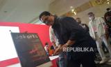 Menteri BUMN Erick Thohir bersiap membubuhkan tanda tangan di poster pada pembukaan Art Jakarta 2022 di Jakarta Convention Center (JCC) Senayan, Jakarta, Jumat (26/8/2022). Pameran yang berlangsung hingga 28 agustus tersebut menghadirkan karya dari berbagai seniman terkurasi dan diharapkan dapat mendukung geliat ekonomi kreatif tanah air. Art Jakarta 2022 sendiri merupakan pekan seni rupa internasional di Indonesia yang dimulai sejak 2009 dan menjadi salah satu barometer ekosistem seni rupa di kawasan Asia Tenggara. Prayogi/Republika. (FOTO : Prayogi/Republika.)