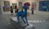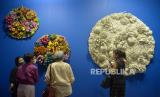 REPUBLIKA.CO.ID, JAKARTA -- Pengunjung mengamati karya seni yang ditampilkan dalam pameran Art Jakarta 2022 di Jakarta Convention Center (JCC) Senayan, Jakarta, Jumat (26/8/2022).