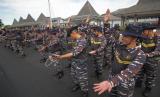 Sejumlah prajurit TNI AL mengikuti permainan aba-aba usai mengikuti Apel Komandan Satuan (AKS) TNI AL 2022 di Lapangan Aru, Akademi Angkatan Laut, Bomimoro, Surabaya, Jawa Timur, Jumat (26/8/2022). Kegiatan apel yang diikuti 496 orang tersebut bertujuan untuk menyamakan persepsi dan pemahaman terhadap kebijakan-kebijakan pimpinan TNI AL dalam pembinaan dan pembangunan kekuatan dalam pelaksanaan tugas yang diemban oleh para komandan satuan di lapangan. (FOTO : ANTARA/Moch Asim)