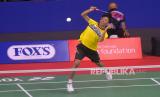 Atlet tunggal putra Para Badminton Indonesia Dheva Anrimusthi melakukan smash ke arah Atlet tunggal putra Para Badminton Polandia Bartlomiej Mroz pada final kelas tunggal putra - SU5 Foxs Indonesia Para Badminton Internasional 2022 di GOR Amongrogo, Yogyakarta, Sabtu (27/8/2022). Dheva yang menjadi unggulan tiga berhasil menjadi juara setelah mengalahkan unggulan pertama Mroz dengan skor 21-9, 21-14. (FOTO : Republika/Wihdan Hidayat)