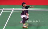 REPUBLIKA.CO.ID, YOGYAKARTA -- Atlet tunggal putri para badminton Qonitah Syakuroh bertanding dengan atlet tunggal putri Australia Celine Vinot pada pertandingan ronde ketiga nomor WS-SL3 Foxs Indonesia Para Badminton Internasional 2022 di GOR Amongrogo, Yogyakarta, Sabtu (27/8/2022). Qonitah memastikan gelar juara nomor WS-SL3 usai mengalahkan Vinot 21-15, 21-16.