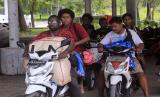 Warga Negara Papua Nugini menumpang ojek sepeda motor untuk berniaga di Pasar Skouw, Distrik Muara Tami, Kota Jayapura, Papua, Sabtu (27/8/2022). Meskipun gerbang resmi perbatasan di Pos Lintas Batas Negara (PLBN) Skouw, Kota Jayapura masih ditutup selama pandemi COVID-19, masih banyak Warga Negara Papua Nugini yang memasuki wilayah Indonesia melalui (FOTO : ANTARA/Gusti Tanati)