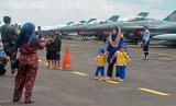 REPUBLIKA.CO.ID,PALEMBANG -- Warga berfoto di depan pesawat tempur F16 pada pameran pesawat tempur di Pangkalan Udara Sri Mulyono Herlambang (Lanud SMH) Palembang, Sumatera Selatan, Ahad (28/8/2022).