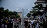Pengunjung memadati area wisata Kota Tua, Jakarta, Ahad (28/8/2022). Setelah sempat ditutup dan pembatasan jumlah pengunjung di kawasan tersebut. Kini kawasan Kota Tua bisa kembali dinikmati warga dengan susana baru setelah revitalisasi seperti penambahan ruang publik serta pelebaran trotoar bagi pejalan kaki. (FOTO : Republika/Thoudy Badai)