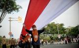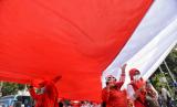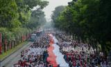Bendera merah putih sepanjang 1.700 meter dibentangkan dari Monas hingga Bundaran HI..