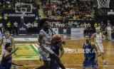 Pebasket Satria Muda Pertamina Jakarta Elijah Johad Foster melakukan tembakan saat pertandingan gim kedua Final IBL Tokopedia 2022 di Gor C-Tra Arena Bandung, Kota Bandung, Ahad (28/8/2022). Satria Muda Pertamina Jakarta berhasil menjadi juara IBL Tokopedia 2022 usai mengalahkan Pelita Jaya Bakrie Jakarta dengan skor 89-74. Republika/Abdan Syakura (FOTO : REPUBLIKA/ABDAN SYAKURA)