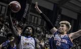 Pebasket Satria Muda Pertamina Jakarta Brachon Lanalt Griffin (tengah) berusaha melakukan lay up saat pertandingan gim kedua Final IBL Tokopedia 2022 di Gor C-Tra Arena Bandung, Kota Bandung, Ahad (28/8/2022). Satria Muda Pertamina Jakarta berhasil menjadi juara IBL Tokopedia 2022 usai mengalahkan Pelita Jaya Bakrie Jakarta dengan skor 89-74. Republika/Abdan Syakura (FOTO : REPUBLIKA/ABDAN SYAKURA)