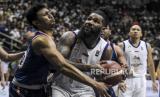 Pebasket Satria Muda Pertamina Jakarta Brachon Lanalt Griffin (kiri) berusaha melewati hadangan pebasket Pelita Jaya Bakrie Jakarta saat pertandingan gim kedua Final IBL Tokopedia 2022 di Gor C-Tra Arena Bandung, Kota Bandung, Ahad (28/8/2022). Satria Muda Pertamina Jakarta berhasil menjadi juara IBL Tokopedia 2022 usai mengalahkan Pelita Jaya Bakrie Jakarta dengan skor 89-74. Republika/Abdan Syakura (FOTO : REPUBLIKA/ABDAN SYAKURA)