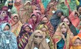 REPUBLIKA.CO.ID, Peserta pawai bernyanyi sambil mengenakan tutup kepala tradisional perempuan Melayu Seberang Kota Jambi pada Festival Tudung Lingkup di Kampung Tengah, Pelayangan, Jambi, Ahad (28/8/2022).