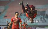 REPUBLIKA.CO.ID,BOGOR -- Pesepak bola Rans Nusantara FC Wander Luiz (kanan) melakukan selebrasi usai mencetak gol ke gawang Barito Putera dalam pertandingan Liga 1 di Stadion Pakansari, Kabupaten Bogor, Jawa Barat, Senin (29/8/2022).