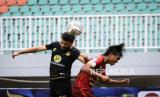Pesepak bola Rans Nusantara FC Ady Setiawan (kanan) berebut bola di udara dengan pesepak bola Barito Putera Mike Rigoberto (kiri) dalam pertandingan Liga 1 di Stadion Pakansari, Kabupaten Bogor, Jawa Barat, Senin (29/8/2022). Rans Nusantara FC mengalahkan Barito Putera dengan skor 2-1. (FOTO : ANTARA/Asprilla Dwi Adha)