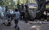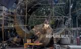REPUBLIKA.CO.ID, BANDUNG -- Pekerja menyelesaikan pembuatan karya seni rupa rancangan seniman I Nyoman Nuarta di NuaArt Sculpture Park, Jalan Setra Duta Raya, Parongpong, Kabupaten Bandung Barat, Selasa (30/8/2022).
