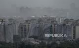 Bangunan tempat tinggal di dekatnya diselimuti debu ketika menara apartemen kembar bertingkat rata dengan tanah di Noida, pinggiran New Delhi, India, Minggu, 28 Agustus 2022. Pembongkaran dilakukan setelah pengadilan tinggi negara itu menyatakan bangunan itu ilegal karena melanggar membangun norma. Menara 32 lantai dan 29 lantai, yang dibangun oleh pembangun swasta belum ditempati dan menjadi struktur tertinggi di India yang akan diratakan dengan tanah. (FOTO : AP/Altaf Qadri)