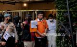 REPUBLIKA.CO.ID,JAKARTA -- Tersangka mantan Kadiv Propam Polri Irjen Ferdy Sambo mengenakan pakaian tahanan bersama istrinya Putri Chandrawathi saat mengikuti rekonstruksi di rumah dinas Ferdy Sambo di Kompleks Polri Duren Tiga, Jalan Duren Tiga Utara I, Jakarta Selatan, Selasa (30/8/2022).