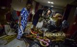Anggota Wayang Orang Bharata memakai kostum pementasan saat mengemas perlengkapan di Gedung Wayang Orang Bharata, Senen, Jakarta, Selasa (30/8/2022). Perlengkapan untuk pertunjukan wayang orang tersebut dikemas untuk dipindahkan sementara jelang renovasi Gedung Wayang Orang Bharata yang akan dimulai pada awal September. Republika/Putra M. Akbar (FOTO : Republika/Putra M. Akbar)