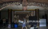 Anggota Wayang Orang Bharata mengemas perlengkapan pementasan di Gedung Wayang Orang Bharata, Senen, Jakarta, Selasa (30/8/2022). Perlengkapan untuk pertunjukan wayang orang tersebut dikemas untuk dipindahkan sementara jelang renovasi Gedung Wayang Orang Bharata yang akan dimulai pada awal September. Republika/Putra M. Akbar (FOTO : Republika)