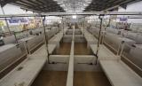 Warga melintas di antara lapak Pasar Tim Pengendali Inflasi Daerah (TPID) dua yang kosong di kompleks Dreamland, Batam, Kepulauan Riau, Selasa (30/8/2022). Pasar yang merupakan Pasar TPID kedua yang menjadi acuan harga bagi pasar-pasar lain di daerah tersebut sepi Pedagang, salah satunya diakibatkan kurangnya pendapatan dikarenakan para pembeli lebih memilih dagangan yang dijual pada lapak pasar liar yang dibuka pedagang di pinggir jalan umum dan lebih dekat dengan permukiman warga. (FOTO : ANTARA/Teguh Prihatna)