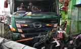 REPUBLIKA.CO.ID, BEKASI -- Sejumlah petugas Kepolisian berusaha mengevakuasi sebuah truk kontainer yang menabrak halte bus di depan SDN Kota Baru II dan III di Jalan Sultan Agung, Bekasi, Jawa Barat, Rabu (31/8/2022). Menurut keterangan kepolisian, dalam kecelakaan yang diduga diakibatkan rem blong tersebut telah menyebabkan 10 orang meninggal dunia, tujuh diantaranya anak-anak sekolah serta 30 orang lainnya luka-luka.