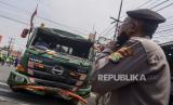 REPUBLIKA.CO.ID,BEKASI -- Polisi berusaha mengeluarkan truk yang mengalami kecelakaan di Jalan Sultan Agung, Bekasi, Jawa Barat, Rabu (31/8/2022).