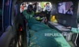 Jenazah korban kecelakaan truk berada di dalam mobil ambulans di RSUD Bekasi, Jawa Barat, Rabu (31/8/2022). Sebanyak tujuh jenazah korban kecelakaan truk yang menabrak tiang BTS hingga roboh dibawa ke RSUD Bekasi untuk diidentifikasi sebelum diserahkan kepada keluarga. Republika/Putra M. Akbar (FOTO : Republika/Putra M. Akbar)