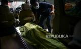 Petugas bersama keluarga korban kecelakaan truk memasukan jenazah ke dalam ambulans di RSUD Bekasi, Jawa Barat, Rabu (31/8/2022). Sebanyak tujuh jenazah korban kecelakaan truk yang menabrak tiang BTS hingga roboh dibawa ke RSUD Bekasi untuk diidentifikasi sebelum diserahkan kepada keluarga. Republika/Putra M. Akbar (FOTO : Republika/Putra M. Akbar)