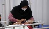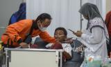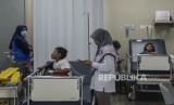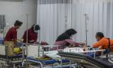 Anak-anak korban kecelakaan truk dirawat di Rumah Sakit Ananda, Bekasi, Jawa Barat, Rabu (31/8/2022). Kecelakaan truk yang menabrak tiang BTS hingga roboh di depan SDN Kota Baru II dan III saat jam istirahat sekolah tersebut mengakibatkan 10 orang meninggal dunia dan 23 lainnya luka-luka, yang mayoritas korban merupakan pelajar SD. Republika/Putra M. Akbar (FOTO : Republika/Putra M. Akbar)