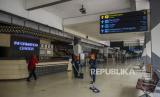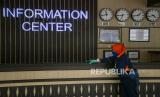REPUBLIKA.CO.ID, JAKARTA -- Petugas berjalan di dekat miniatur pesawat di Bandara Halim Perdana Kusuma, Jakarta, Kamis (1/9/2022). Bandara Halim Perdana Kusuma telah selesai direvitalisasi dan kembali melayani penerbangan komersial mulai 1 September 2022.