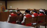 Enam terdakwa kasus penganiayaan terhadap pegiat media sosial Ade Armando menjalani sidang pembacaan putusan di Pengadilan Negeri Jakarta Pusat, Rabu (1/9/2022). Majelis hakim memvonis keenam terdakwa yakni Dhia Ul Haq, Marcos Iswan, Abdul Latif, Muhannad Bagja, Al Fikri Hidayatullah, dan Komar dengan hukuman delapan bulan penjara dalam kasus penganiayaan terhadap Ade Armando saat aksi demonstrasi mahasiswa menolak penundaan Pemilu di depan Gedung DPR pada 11 April 2022 lalu. (FOTO : ANTARA/Indrianto Eko Suwarso)