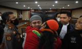 Salah seorang terdakwa kasus penganiayaan terhadap pegiat media sosial Ade Armando, Abdul Latif (kedua kiri) dipeluk kerabatnya usai menjalani sidang pembacaan putusan di Pengadilan Negeri Jakarta Pusat, Rabu (1/9/2022). Majelis hakim memvonis keenam terdakwa yakni Dhia Ul Haq, Marcos Iswan, Abdul Latif, Muhannad Bagja, Al Fikri Hidayatullah, dan Komar dengan hukuman delapan bulan penjara dalam kasus penganiayaan terhadap Ade Armando saat aksi demonstrasi mahasiswa menolak penundaan Pemilu di depan Gedung DPR pada 11 April 2022 lalu. (FOTO : ANTARA/Indrianto Eko Suwarso)
