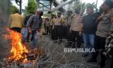 Anggota kepolisian berjaga ketika massa yang tergabung dalam BEM Nusantara menggelar aksi di kawasan Patung Kuda, Jakarta, Kamis (1/9/2022). Dalam aksinya mereka menolak naiknya harga BBM yang dinilai merugikan rakyat kecil. (FOTO : Prayogi/Republika.)