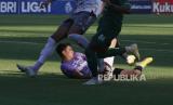 REPUBLIKA.CO.ID,SURABAYA -- Pesepak bola Persebaya Silvio Rodrigues Pereira Junior (kanan) berebut bola dengan pesepak bola Bali United Haudi Abdillah (kanan) saat pertandingan Liga 1 di Stadion Gelora Bung Tomo, Surabaya, Jawa Timur, Jumat (2/9/2022).
