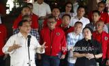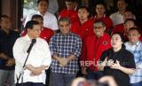 REPUBLIKA.CO.ID, JAKARTA -- Ketua Umum Partai Gerindra Prabowo Subianto bertemu dengan Ketua DPP PDI Perjuangan Puan Maharani beserta jajaran petinggi partai saat melakukan pertemuan di Padepokan Garuda Yaksa, Hambalang, Sentul, Kabupaten Bogor, Jawa Barat, Minggu (4/9/2022). Pertemuan tersebut merupakan bagian dari safari politik dan komunikasi politik Puan Maharani jelang Pemilu 2024.