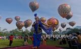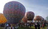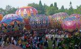 REPUBLIKA.CO.ID, WONOSOBO -- Warga menyaksikan penerbangan balon tradisional saat digelar Java Balloon Attraction di lapangan Taman Rekreasi Kalianget, Wonosobo, Jawa Tengah, Minggu (4/9/2022). Atraksi penerbangang balon tradisional diikuti oleh 25 balon unik dan tiga balon khusus dengan membentuk formasi Gunung Sindoro, Telaga Menjer, Waduk Wadaslintang dan Gunung Prau yang merupakan ikon wisata alam yang ada di kabupaten Wonosobo. ANTARA FOTO/Anis Efizudin/foc