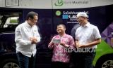 Direktur Utama PT Bank Muamalat Indonesia Tbk Achmad K. Permana (kiri) berbincang bersama Direktur Utama PT Patuna Mekar Jaya, Syam Resfiadi (kanan) dan nasabah Muamalat Prioritas di Jakarta, Senin (5/9/2022). Kegiatan tersebut dalam rangka memperingati Hari Pelanggan Nasional dengan mengusung tema Menciptakan Pelanggan sebagai Promotor. Republika/Thoudy Badai (FOTO : Republika/Thoudy Badai)