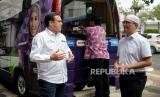 Direktur Utama PT Bank Muamalat Indonesia Tbk Achmad K. Permana (kiri) berbincang bersama Direktur Utama PT Patuna Mekar Jaya, Syam Resfiadi (kanan) saat mengunjungi nasabah Muamalat Prioritas di Jakarta, Senin (5/9/2022). Kegiatan tersebut dalam rangka memperingati Hari Pelanggan Nasional dengan mengusung tema Menciptakan Pelanggan sebagai Promotor. (FOTO : Republika/Thoudy Badai)