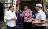 Direktur Utama PT Bank Muamalat Indonesia Tbk Achmad K. Permana (kiri) berbincang bersama Direktur Utama PT Patuna Mekar Jaya, Syam Resfiadi (kanan) saat mengunjungi nasabah Muamalat Prioritas di Jakarta, Senin (5/9/2022). Kegiatan tersebut dalam rangka memperingati Hari Pelanggan Nasional dengan mengusung tema Menciptakan Pelanggan sebagai Promotor. Republika/Thoudy Badai (FOTO : Republika/Thoudy Badai)