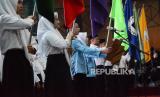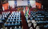 Prosesi Pelantikan dan Taaruf Mahasiswa Baru Tahun Akademik 2022/2023 di Aula Unisba, Jalan Tamansari, Kota Bandung, Senin (5/9). Sebanyak 2.378 mahasiswa baru Unisba mengikuti prosesi pelantikan yang dilaksanakan secara hybrid. (FOTO : Edi Yusuf/Republika)