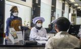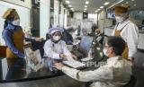 Presiden Direktur BCA Syariah Yuli Melati Suryaningrum (kiri) melayani nasabah memakai kostum chef saat Hari Pelanggan Nasional di Kantor Cabang BCA Syariah, Jatinegara, Jakarta, Senin (5/9/2022). Kepercayaan nasabah terhadap BCA Syariah dalam pertumbuhan Dana Pihak Ketiga (DPK) yang pada Juni 2022 tercatat sebesar Rp 7,90 triliun atau meningkat 16,33 persen YoY. Pertumbuhan DPT ditopang oleh perolehan dana pada produk tabungan yang tumbuh 32,6 persen dibandingkan tahun sebelumnya, sementara giro tumbuh 16 persen YoY. Pertumbuhan tabungan mendorong meningkatnya perolehan CASA mencapai 38,4 persen dari total DPK. Republika/Putra M. Akbar (FOTO : Republika)